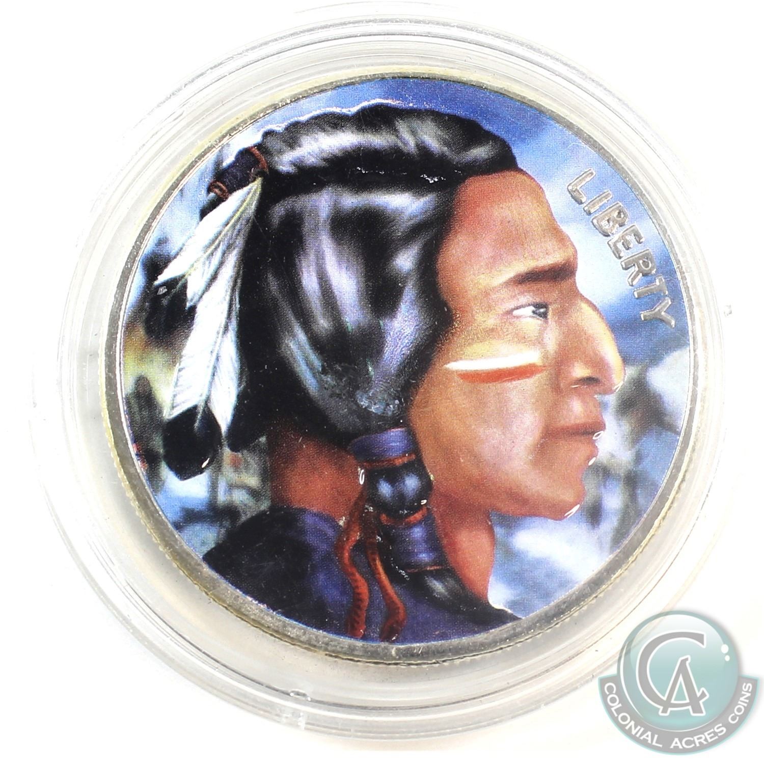 Liberty Buffalo/Indian Head 1oz Coloured .999 Fine Silver Coin in Capsule (Scuffed capsule). (TAX Exempt)