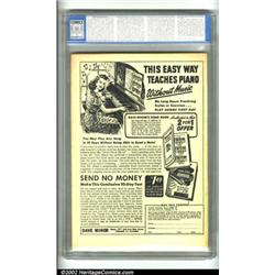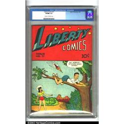 Liberty Comics #11 (Green Publishing Co., 1946). An esoteric book from the 1940s, featuring MLJ's Wilbur and an amusing cover. This book appears near-perfect with a flawless spine. CGC VF/NM 9.0 Cream to off-white pages. Overstreet 2001 NM 9.4 value = $130.  Important notice: We expect to be auctioning lots at the rate of 200-250 per hour. Sometimes eBay Premier live bid software cannot keep up with that pace, so we strongly recommend that you place a realistic proxy bid now as insurance to avoid disappointment. Also please note that all Heritage/CAA lots purchased through eBay Premier carry a 20% Buyer's Premium.