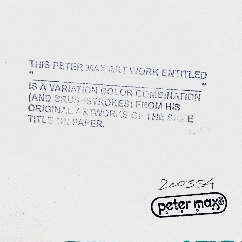 "Liberty, Earth and Flag" is a one-of-a-kind mixed media on paper, hand signed by Peter Max. The piece comes custom framed with a backside cutout to display Peter Max Studio registration number 200354 certifying authenticity. Measures approximately 28" x 24" (frame), 19" x 15" (image). This item requires special handling and may have a longer than usual turnaround.
