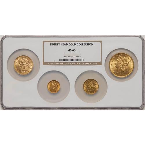 Includes: 1906 $2.50, 1904 $5, 1882 $10, 1904 $20. Choice uncirculated with muted yet ample luster.