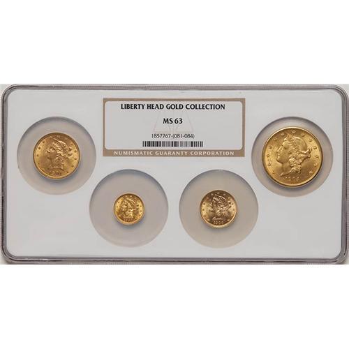 Includes: 1907 $2.50, 1900 $5, 1901 $10, 1904 $20. Choice uncirculated.