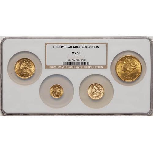 Includes 1903 $2.50, 1893 $5, 1907 Liberty $10, 1904 $20. Choice uncirculated, frosty and well matched.