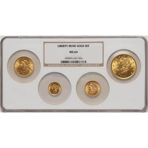 Includes: 1907 $2.50; 1886-S $5; 1907 $10; 1904 $20. Nearly gem uncirculated and attractive.