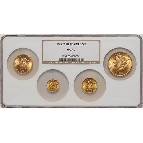 Includes: 1907 $2.50; 1908 Liberty $5; 1901-S $10; 1904 $20. Gem uncirculated, many with cartwheel effect luster.