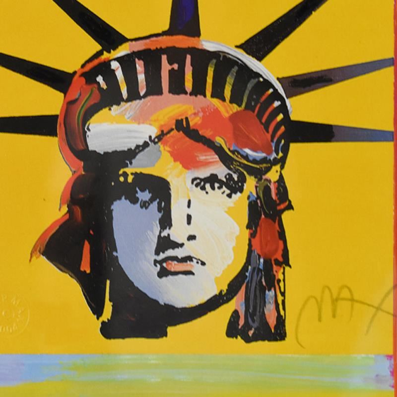 Liberty Head by Peter Max. Please see photos and description for all available information. "Liberty Head" is a limited edition lithograph on paper by Peter Max, numbered and hand signed by the artist. This piece comes framed. Includes Certificate of Authenticity from Peter Max Studios. Measures approximately 18" x 18" (frame), 7" x 7" (image). There may be very minor imperfections on the frame.