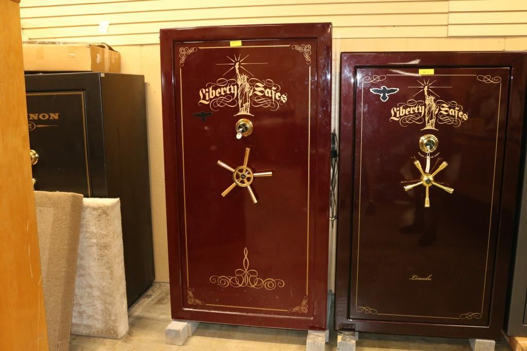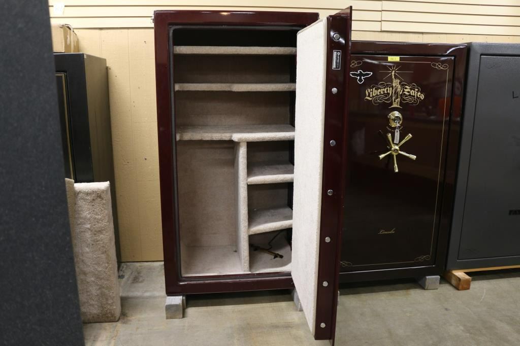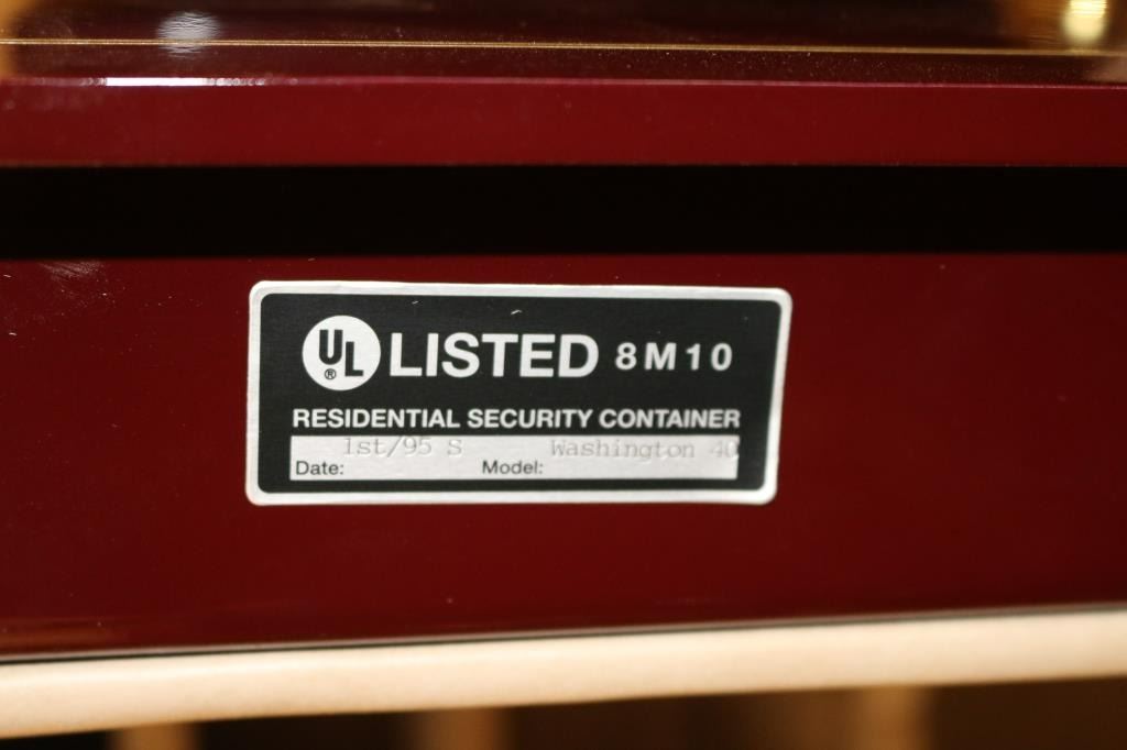 Washington 40 model, circa 1995. Burgundy high gloss finish. Fully carpeted interior with long gun organizer and shelves. 67"X36"x27.5".