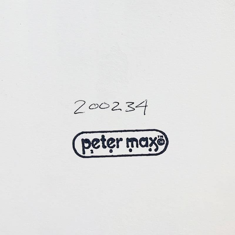 "Liberty & Justice" is a one-of-a-kind acrylic mixed media on paper, hand signed by Peter Max. The piece comes custom framed with a backside cutout to display Peter Max Studio registration number 200234 certifying authenticity. Measures approx. 30" x 24" (frame), 24" x 18" (image).