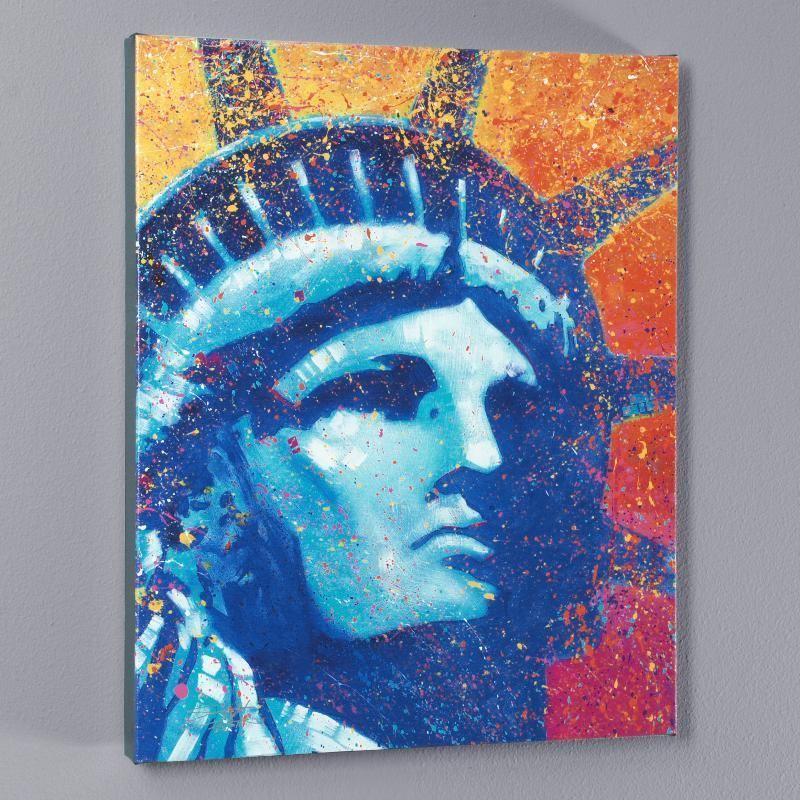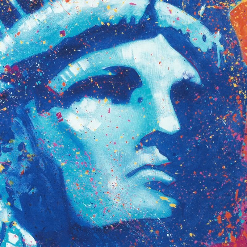 With bright colors and expressive lines, Stephen Fishwick puts a unique spin on pop culture portraits. "Liberty" is a limited edition giclee on stretched canvas, numbered with authorized signature. This piece comes gallery wrapped! Includes Certificate of Authenticity! Measures approx. 16" x 20" (image).