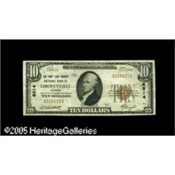 <B>Libertyville, IL</B></I> - $10 1929 Ty. 1 <B>The First Lake County NB</B></I> Ch. # 6514<BR>The very rare second title used here, with just two examples listed in the census. One is considerably lower grade than this piece, while the other is listed without a grade. <B>Fine-Very Fine.</B></I> Lot:16847