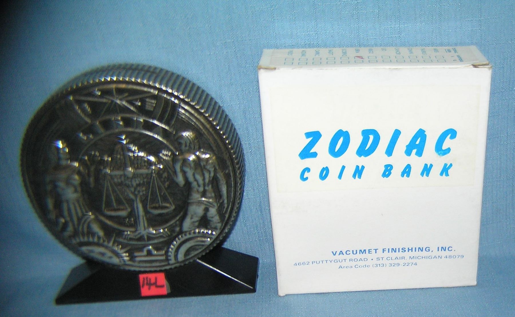 Libra all cast metal Zodiac bank with original box est. value $80.00-$90.00