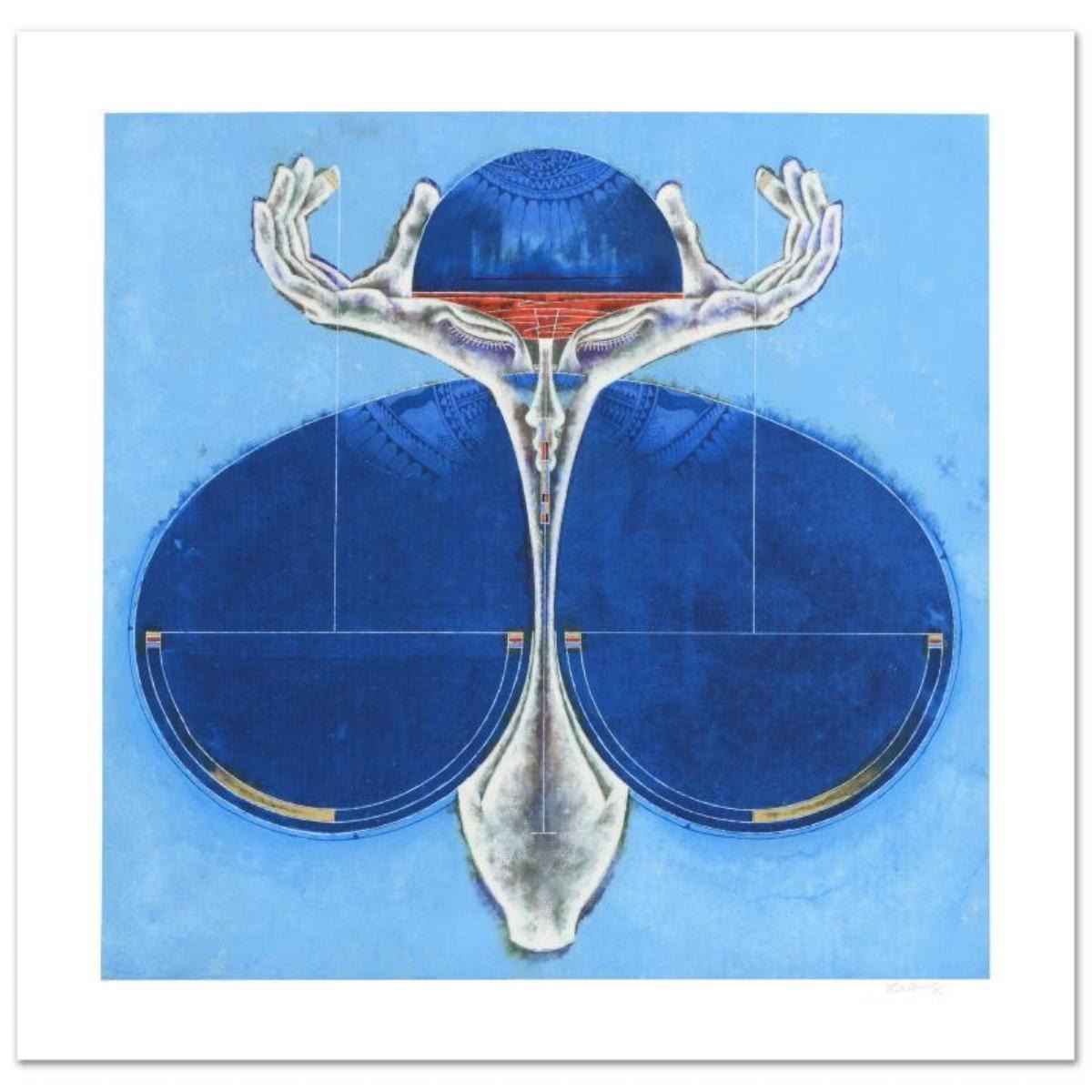 Libra by Hong, Lu. The zodiac is a phenomenological study, formed by coordination between 12 specific constellations in space and birth of one specific human being in time, contrasting 12 signs that guide the meditation of love, fate and purpose of one's life. "Libra (9/24 - 10/23)" is a limited edition giclee on paper by talented Chinese artist Lu Hong, numbered and hand signed by the artist! Measures approx. 24" x 24" (with border), 20" x 20" (image).
