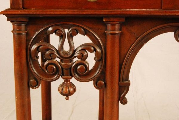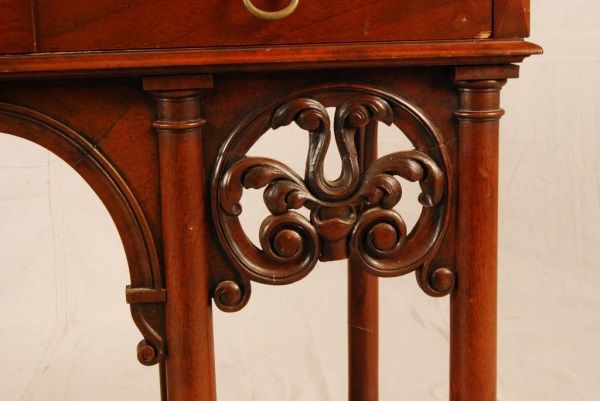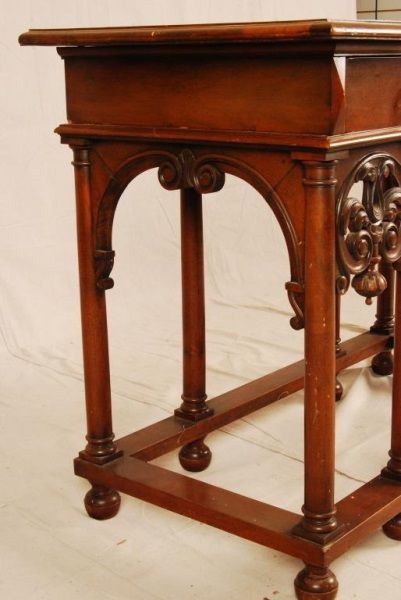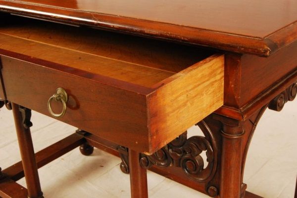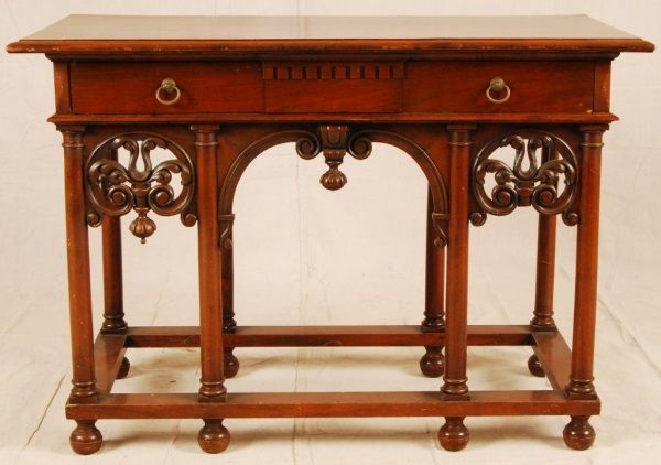 One drawer in center. 48" wide x 23" deep x 33 1/2" tall.
