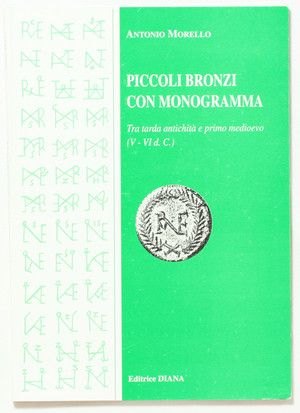 Libri di Numismatica: Mondo Romano. MORELLO, A. Piccoli bronzi con monogramma tra tarda antichità e primo medioevo (V-VI d.C.). Editrice Diana. Cassino, 2000. In-8, pp. 94, numerose illustrazioni n.t., brossura editoriale.