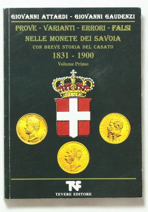 Libri di Numismatica: Monete Medievali e Moderne. ATTARDI, G. & GAUDENZI, G. Prove, varianti, errori, falsi nelle monete dei Savoia con breve storia del Casato 1831-1900. Volume primo. Tevere Editore. 2008. In-8, pp. 411, numerose illustrazioni a colori n.t., brossura editoriale. Edizione limitata di 1000 esemplari numerate, copia n. 277.