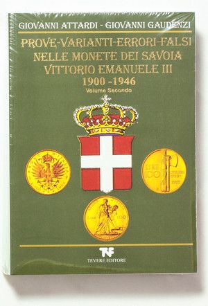 Libri di Numismatica: Monete Medievali e Moderne. ATTARDI, G. & GAUDENZI, G. Prove, varianti, errori, falsi nelle monete dei Savoia Vittorio Emanuele III 1900-1946. Volume secondo. Tevere Editore. 2010. In-8, pp. 761, numerose illustrazioni a colori n.t., brossura editoriale. Edizione di 1000 esemplari numerati.