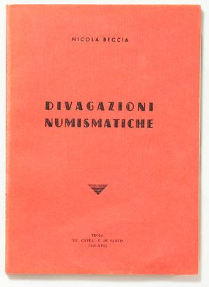 Libri di Numismatica: Numismatica Generale. BECCIA, N. Divagazioni numismatiche. Tipografia Catea. Troja, 1940. In-8, pp. 129, brossura editoriale. Intonso.