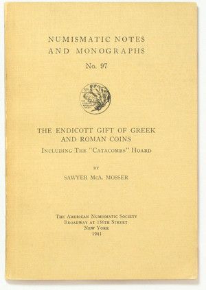 Libri di Numismatica: Numismatica Generale. MOSSER, S.McA. The Endicott Gift of Greek and Roman coins including the 'Catacombs' hoard. The American Numismatic Society. New York, 1941. In-16, pp. 53, 9 tav. f.t., brossura editoriale.