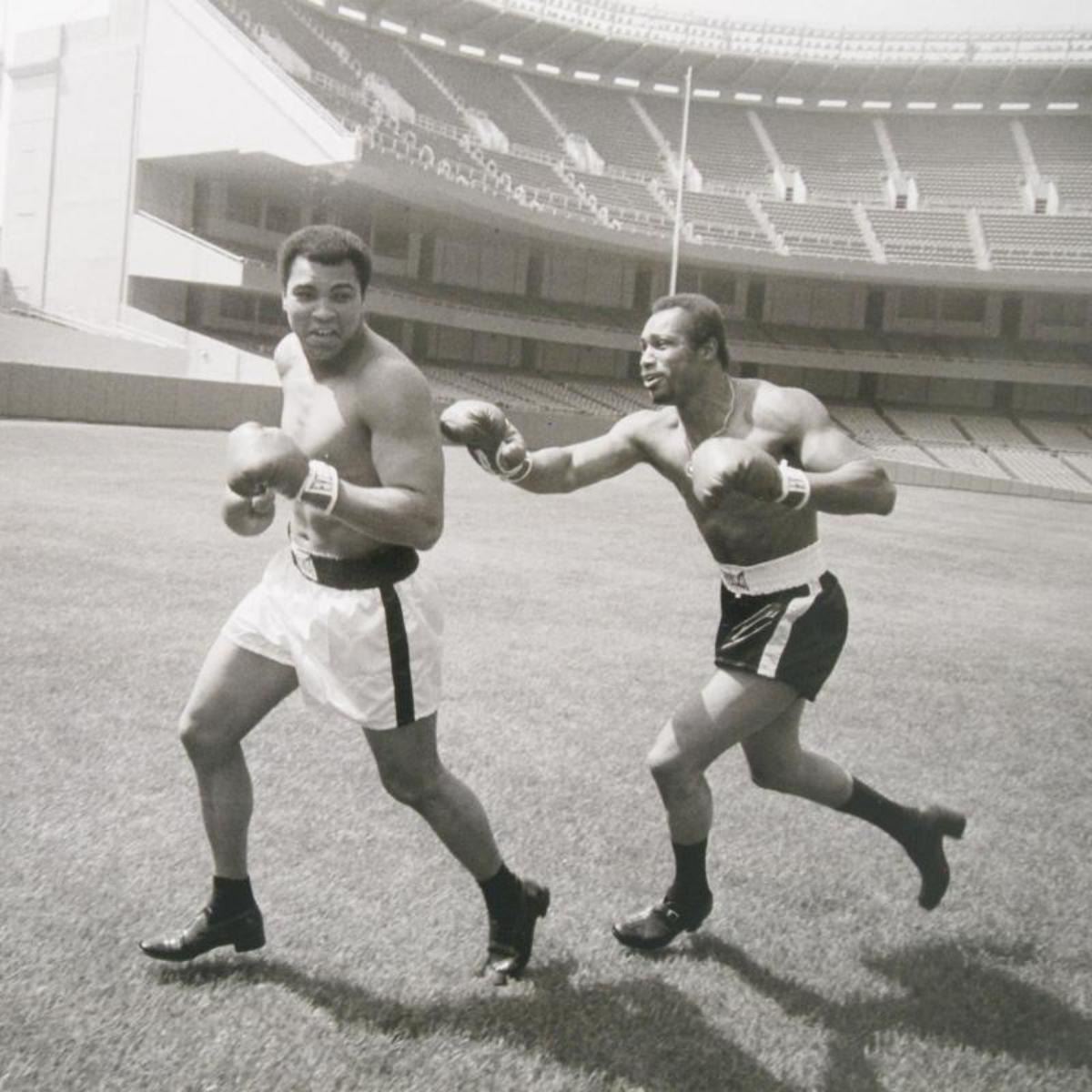 Own a piece of sports history with this photo of Muhammad Ali and Ken Norton (1943-2013), one of Ali's famed opponents. Taken at the peak of Ali's success as one of the greatest heavyweight championship boxers of all time, this photo is sure to complement any sports memorabilia collection. This is a licensed photograph on paper. Measures approx. 40" x 30" (no border). Reference #: 168452.