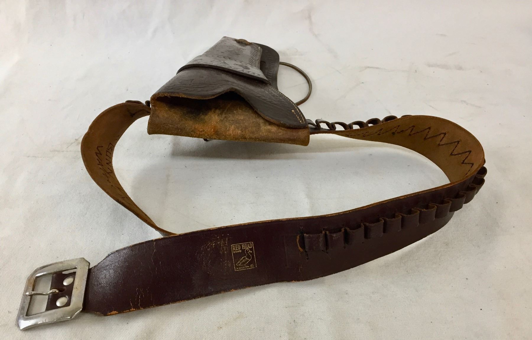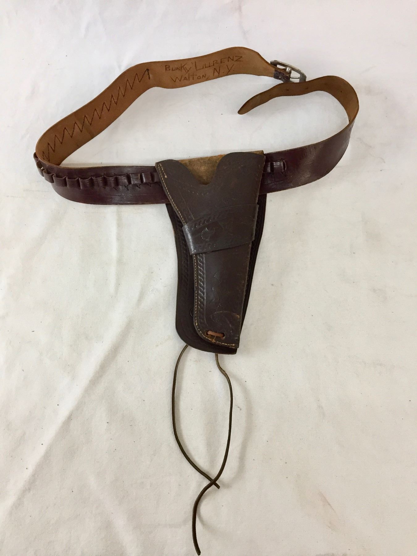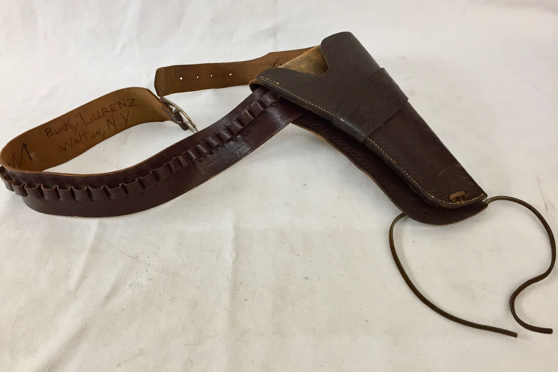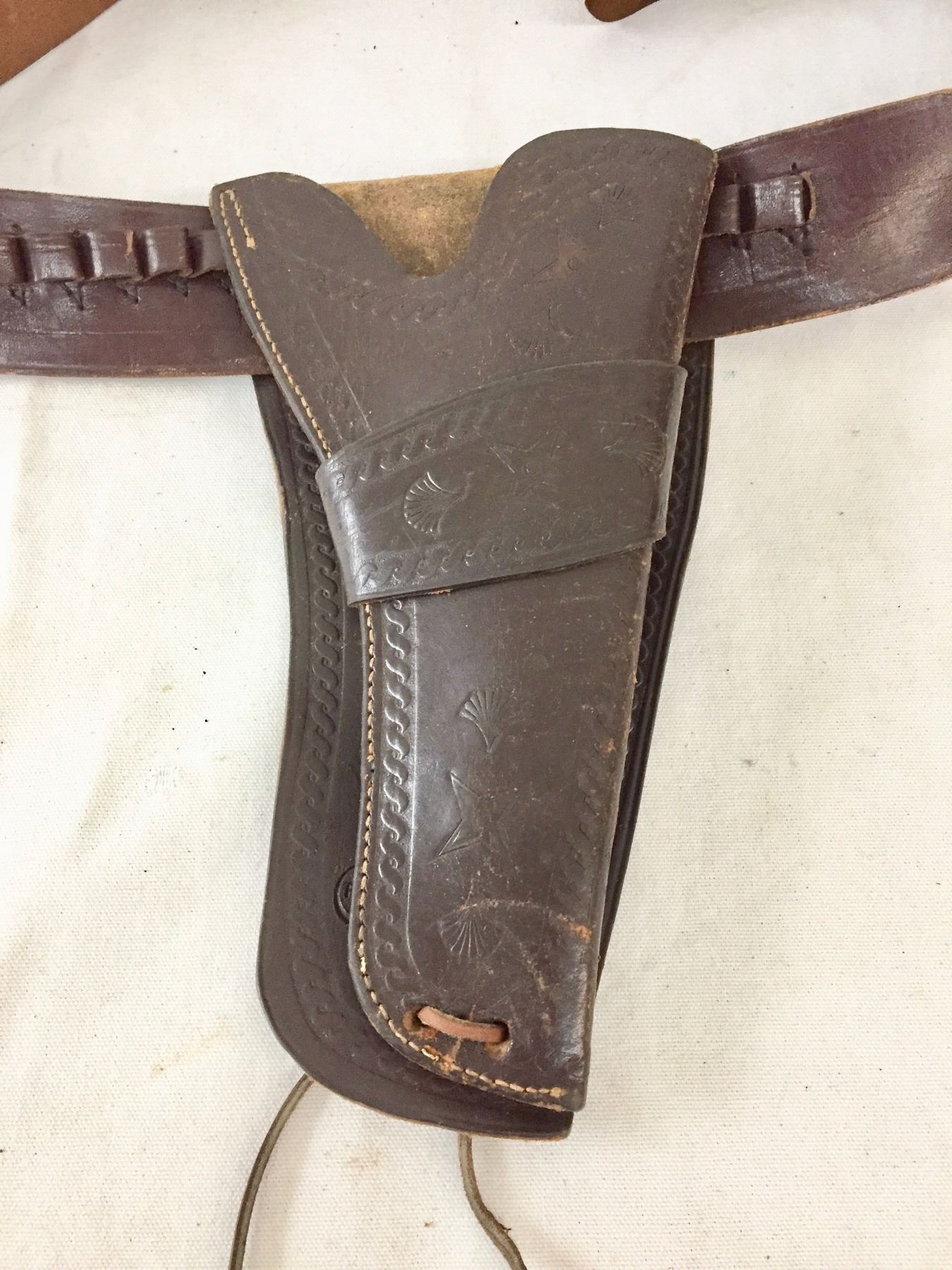 Description: Featured for sale in this lot is a nice, leather gun rig, featuring leather tooling on the holster. Appears to fit a .38 cal. Maker: Lichtenberger Ferguson Company. Approx. Age: Vintage. Size: Belt 36”. Holster 5-1/2” x 10-1/2” long. Condition: Good for its age, normal wear expected. Please look closely at the pictures - they are an important part of our description. Shipping: There will be a $5 handling / packaging fee for shipping this lot. The actual cost of postage will be added on top of that.