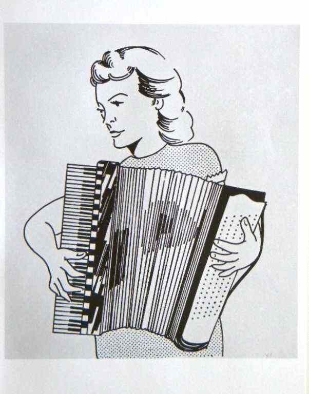 Lichtenstein "Girl With Accordion" Lithograph (After The Drawing). This Print Is From The Deluxe Edition Of 180 On J A Dessin Wove Paper. Printed In 1970 By Imprimeries Reunies Of Lausanne, Switzerland (From The First Edition Of A Beautifully-Produced Catalogue-- The Quality Of This Limited Edition Is Excellent). Image Size: 10 X 8 3/4 Inches- Professionally Framed & Matted - Comes With Certificate - -