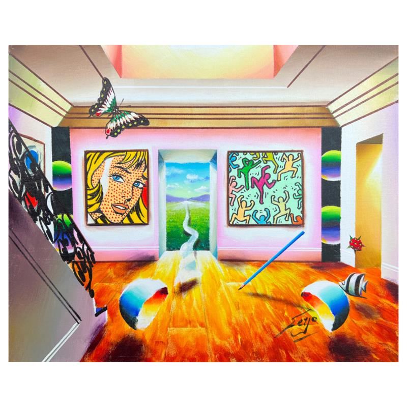 "Lichtenstein and Haring Hanging Together" is an original painting, oil on stretched canvas, by Ferjo. Hand signed by the artist, this piece comes with a letter of authenticity. Measures approximately 20" x 24" (image).
