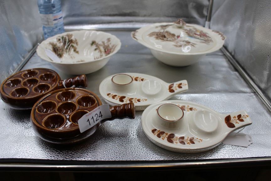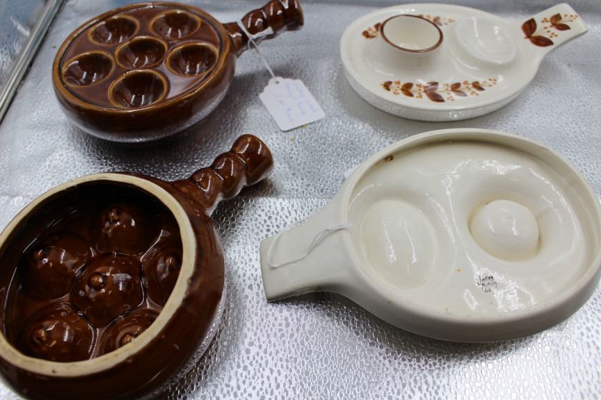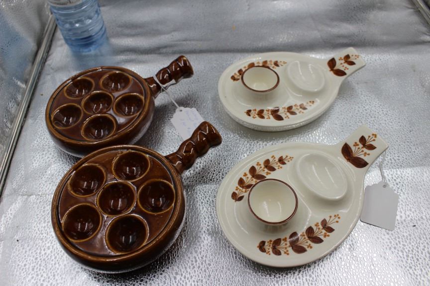 2- Vintage 6 Hole Escargot Bowls, 2 Ceramic Egg Cups