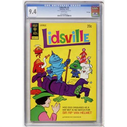 <B>Lidsville #5 File Copy (Gold Key, 1973) CGC NM 9.4 White pages.</B></I> CGC notes, "From the Random House Archives." Overstreet 2007 NM- 9.2 value = $45. CGC census 10/07: 1 in 9.4, 1 higher.<BR><BR><b>Shipping:</b> Comics - Slabbed (certified) (<a target="_blank" href="http://www.heritageauctions.com/common/shipping.php">view shipping information</a>)