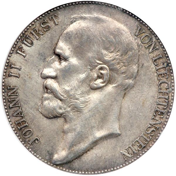Liechtenstein. 5 Kronen, 1910. Dav-216; KM-Y4. John II, 1858-1929. Head left. Reverse: Crowned arms. NGC graded MS-63.