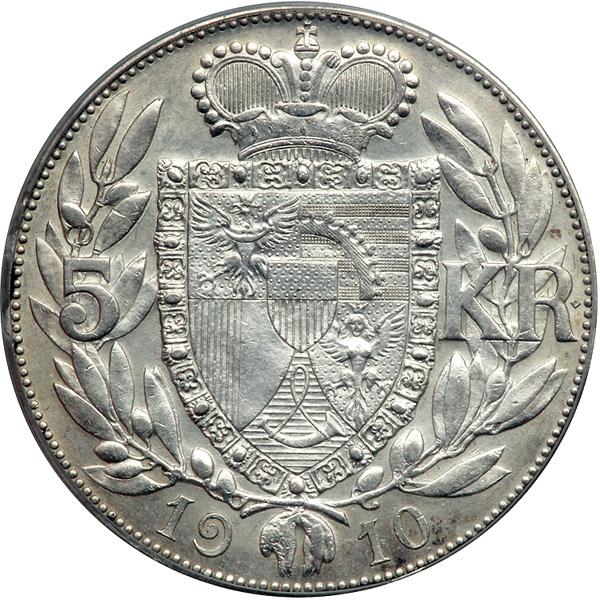 Liechtenstein. 5 Kronen, 1910. Dav-216; KM-Y4. John II. PCGS graded AU-55.