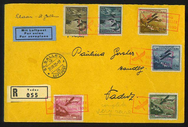 Very nice cover, opened neatly at top bearing Liechtenstein C1-C6 with nice cancels. 2009 for stamps alone $130