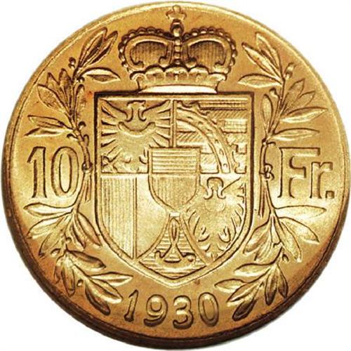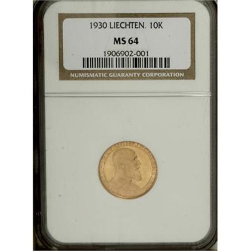 <B>Franz I gold 10 Franken 1930, </B></I> KM-Y11, MS64 NGC, a choice example with some frost to the bust.<BR><BR><b>Shipping:</b> Coins & Currency (<a target="_blank" href="http://www.heritageauctions.com/common/shipping.php">view shipping information</a>)