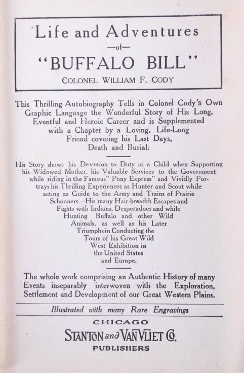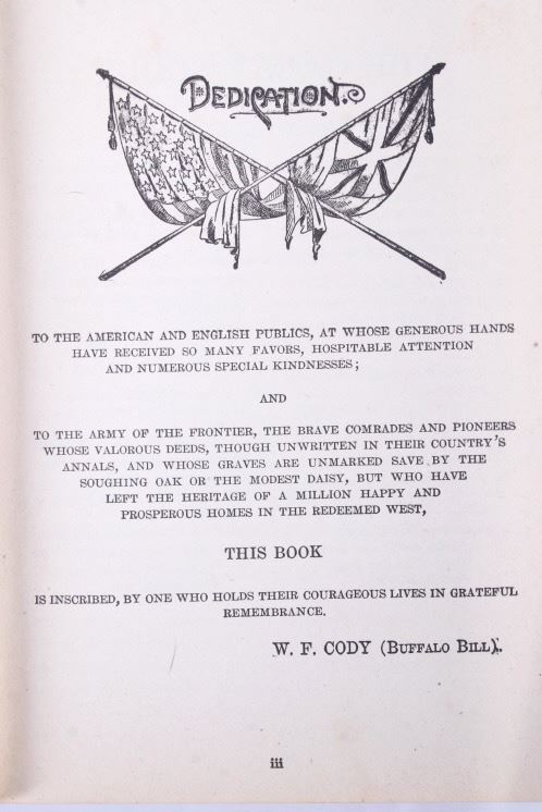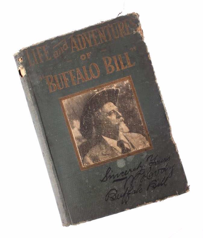 This is a scarce 1st edition of "Life and Adventures of Buffalo Bill" written by Colonel William F. Cody and published in 1917. The book chronicles the thrilling life and times of one of the greatest adventurers of the late 1800's and early 1900's. From his start as an army scout during the westward expansion to the Buffalo Bill's Wild West, this book is an exciting read as Buffalo Bill's own words grace its pages. The book shows very good condition and has a personalized inscription on the first page. It measures 6" x 8.5".
