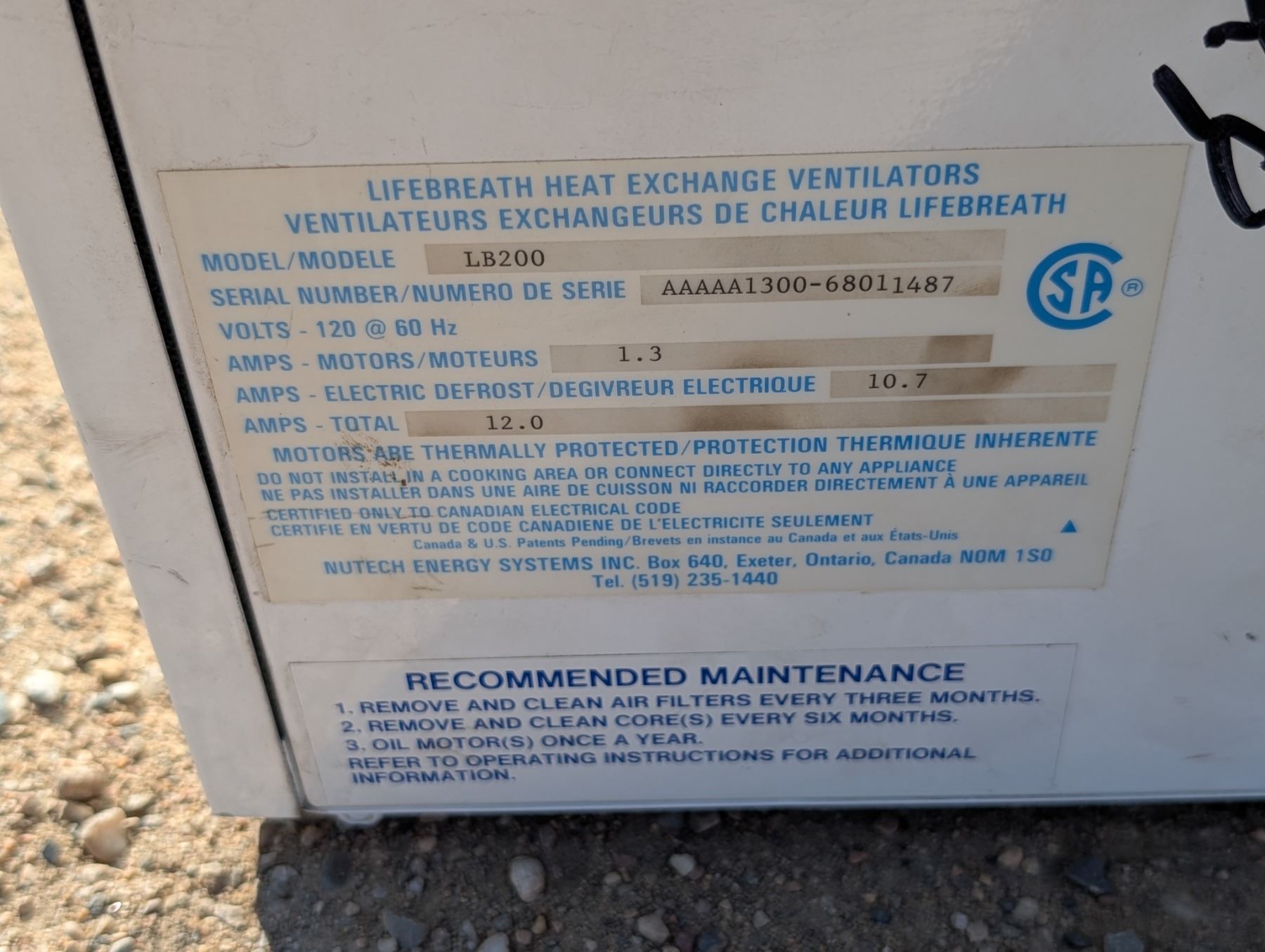Life Breath heat Exchange Ventilators Model LB200 (Not Tested)