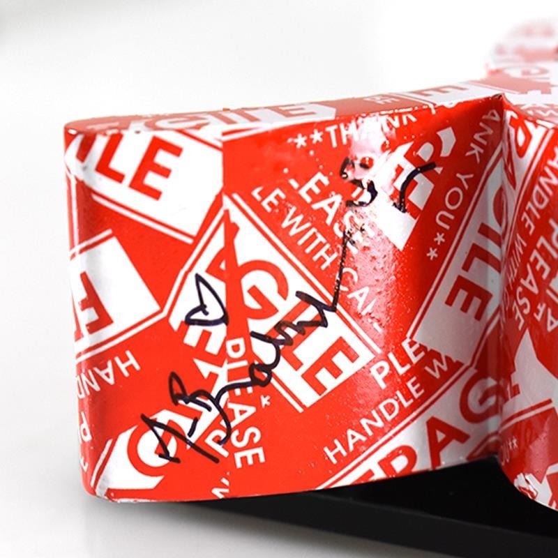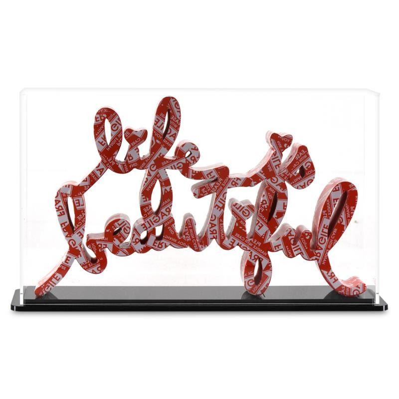 "Life is Beautiful (Fragile Sticker)" is a limited edition resin sculpture by Mr. Brainwash, numbered 6/90 and hand signed by the artist. This piece comes with an acrylic display case. Includes Certificate of Authenticity. Measures approx. 12" x 7" x 2".