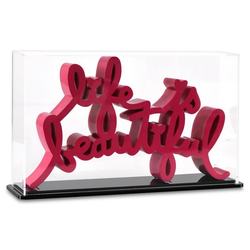 "Life is Beautiful (Neon Pink)" is a limited edition resin sculpture by Mr. Brainwash, numbered 6/70 and hand signed by the artist. This piece comes with an acrylic display case. Includes Certificate of Authenticity. Measures approx. 12" x 7" x 2".