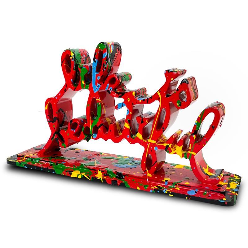 "Life is Beautiful (Red)" is a limited edition resin sculpture by Mr. Brainwash, numbered 11/48 and hand signed by the artist. This piece comes with an acrylic display case. Includes Letter of Authenticity. Measures approx. 7" x 10" x 3".