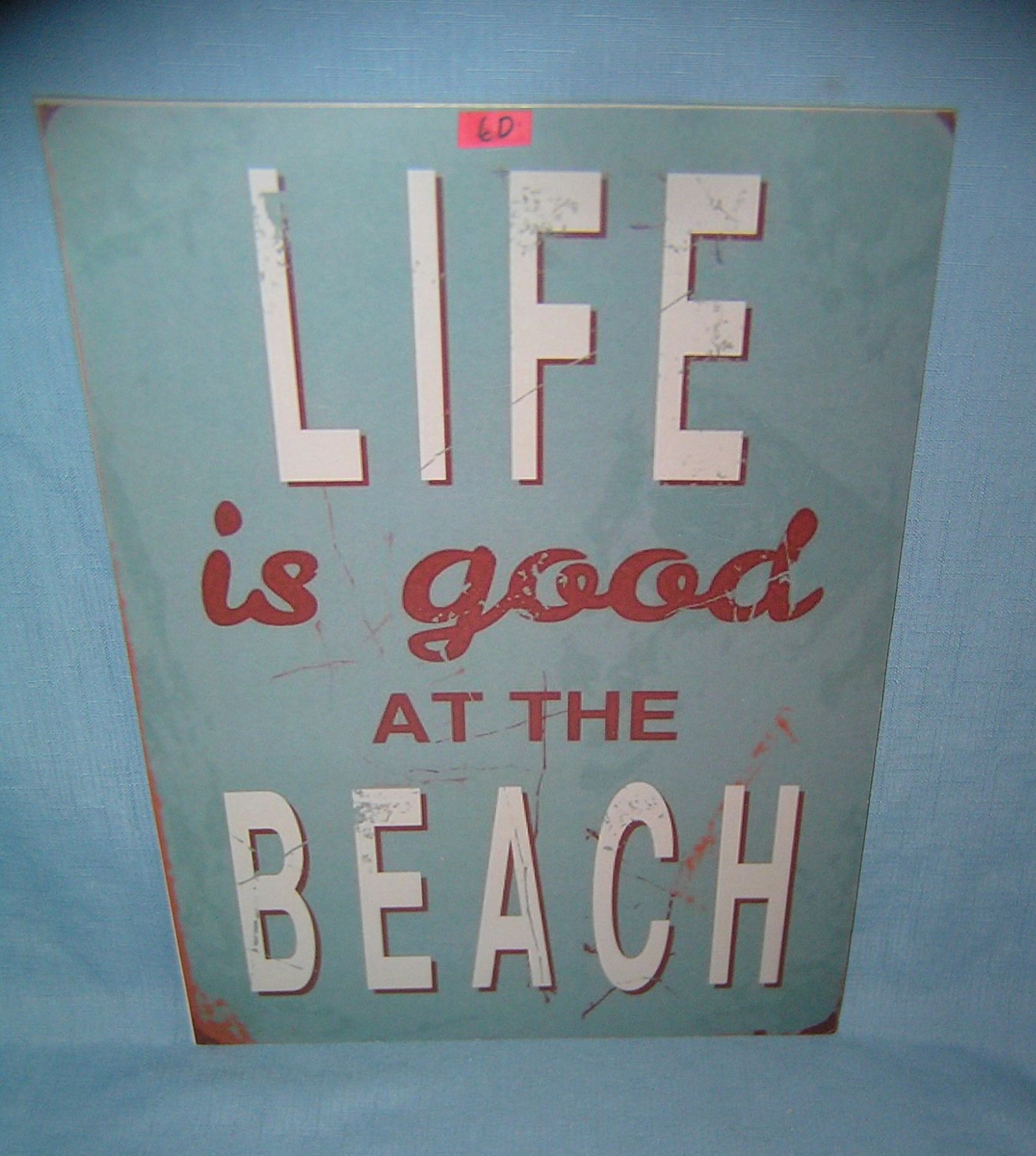 Life is Good at the Beach retro style advertising sign printed on PVC hard board these signs are auctioned for there decorative and display purposes 12 inches by 16 inches est. value $50.00-$60.00