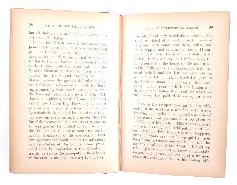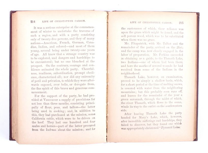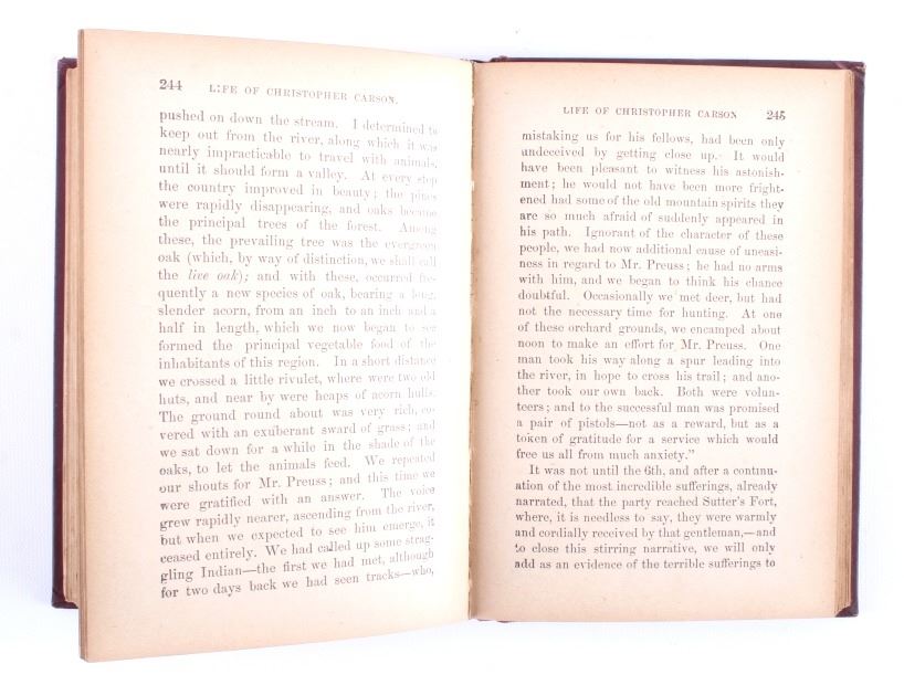 This is a scarce "Oxford Edition" of The Life of Kit Carson by Charles Burdett. The hardbound book was published in 1870 by Lovell, Coryell, & Company in New York, New York. The book is comprised of wild and romantic exploits of the hunter and trapper of the Rocky Mountains - Kit Carson. Overall, the book shows good condition. The novel measures 7 3/8" tall, 5 1/4" wide, and 1 1/8" thick.