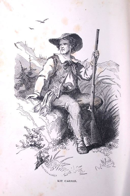This is "Life of Kit Carson" by Charles Burdett. The book was published in 1869 and chronicles the life and times of the frontiersman. The book shows good overall condition with minor wear to the binding as shown. The book measures 4.75" x 7.25".