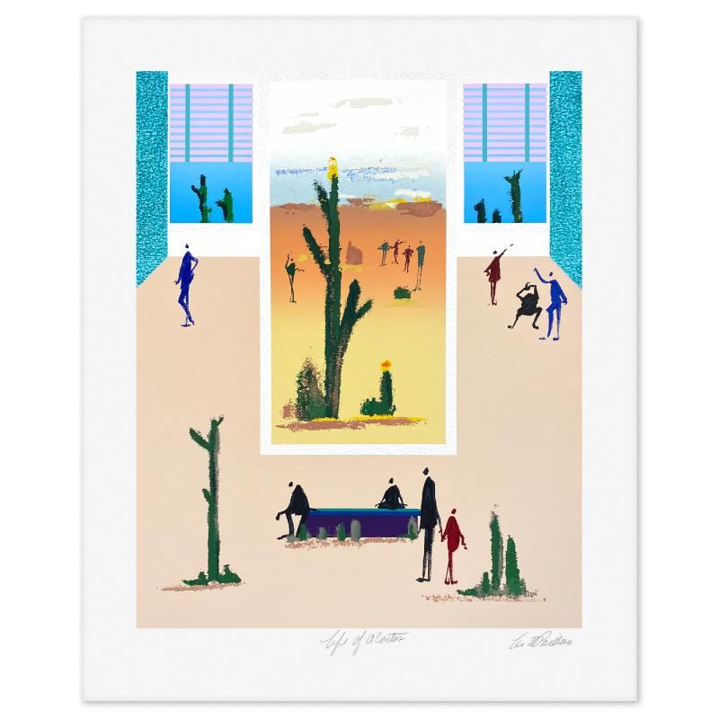 "Life of a Cactus" is a limited edition serigraph on paper by Leo Posillico, numbered and hand signed with a Letter of Authenticity. Measures approx. 37" x 30" (border), 30" x 24" (image).