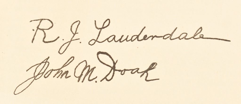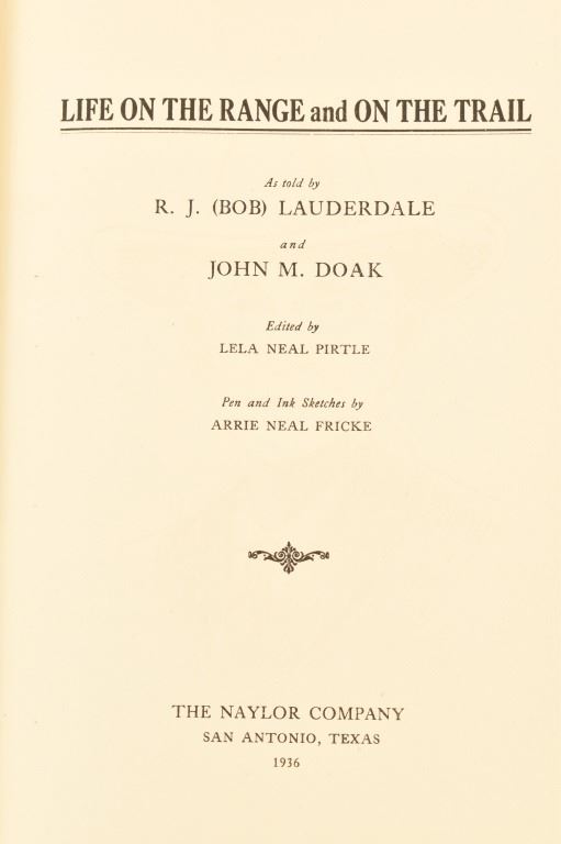 by J. Lauderdale and John M. Doak. Signed by both authors, 1936 first edition. Published by The Naylor Company, San Antonio Texas.