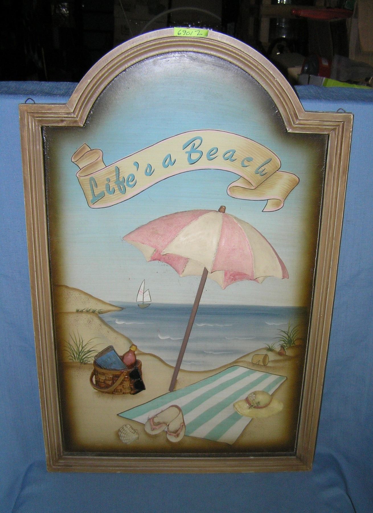 Life's a Beach 3 dimensional framed wall display piece 17 1/4 inches wide by 27 inches high est. value $100.00-$125.00