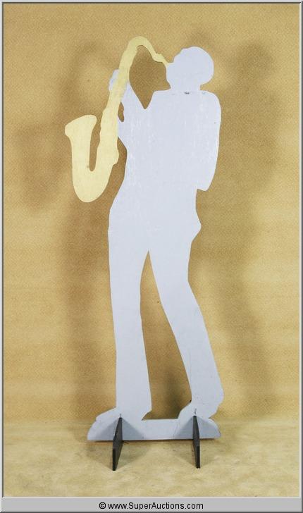 Life-Size Silver Silhouette Jazz Trumpet Player Painted Wood with Stand
