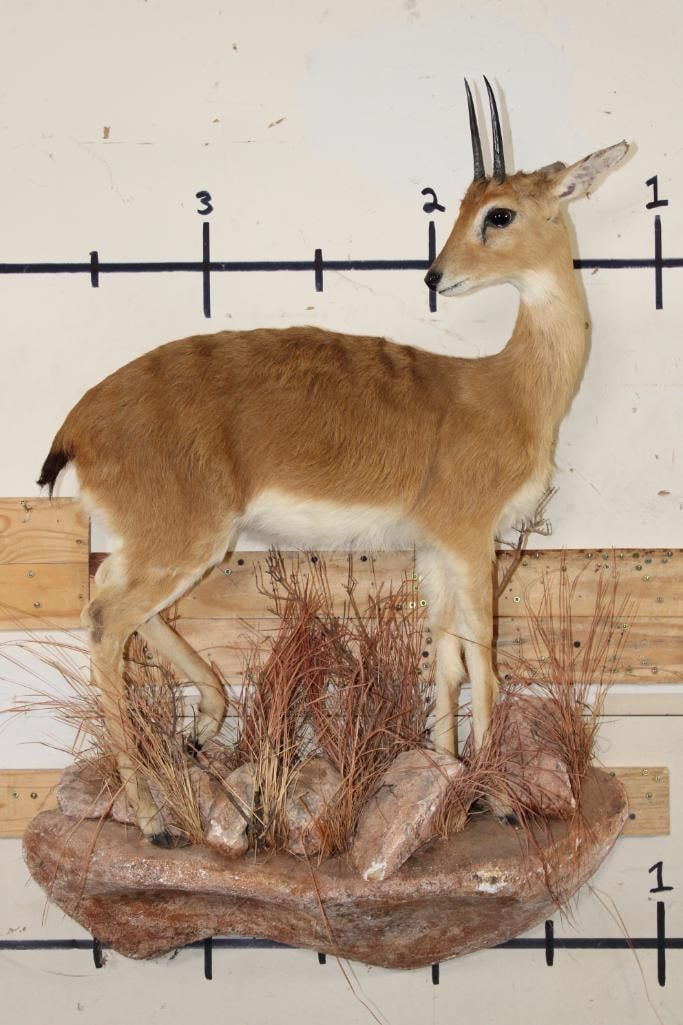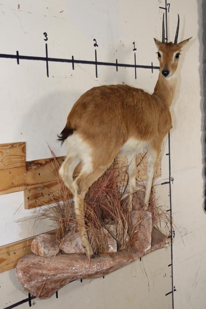 Nice Life-sized ORIBI. It is on a simulated Rock Wall Base and measures 32" Long x 46" Tall x 13" Depth. TAXIDERMY