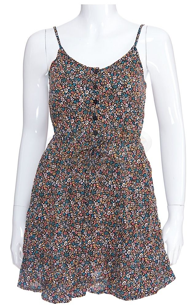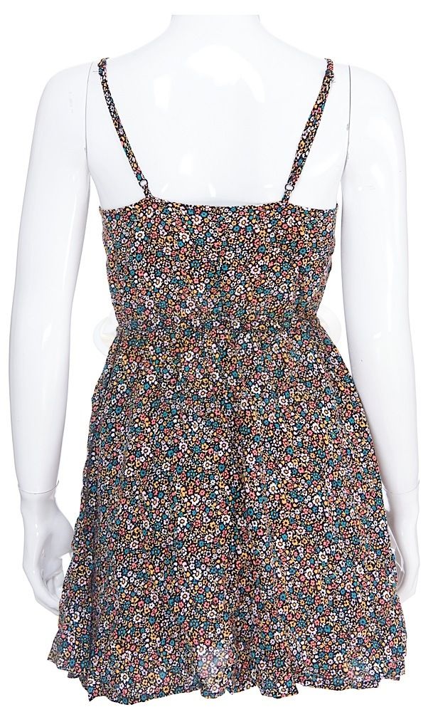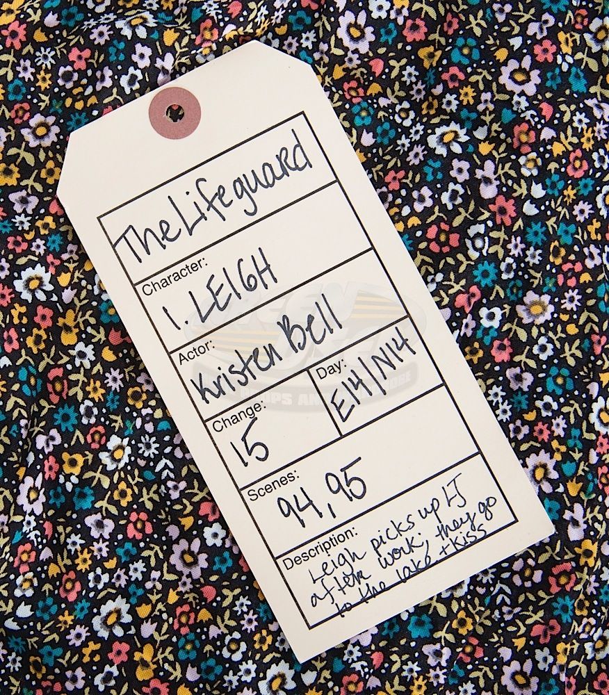 (C Plus Pictures, 2013) This dress was acquired by the production for use by Kristen Bell as "Leigh". The size 4 dress features a multi-color floral pattern and remains in very good condition. Included with the dress is a production used costume tag that details the change and scene numbers used.