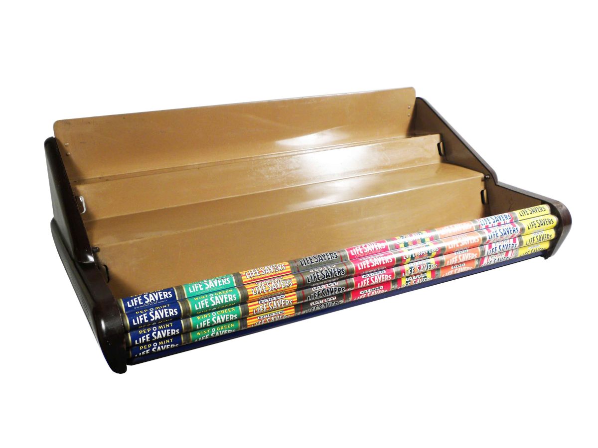 Lifesaver Store Display Bakelite Ends and Tin Store Display. Excellent condition. 29 X 9 1/2 X 15 1/2