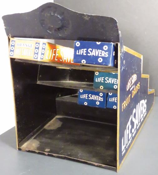 Lifesavers Embossed Tin Litho Store Display. Comes with some original display boxes and product. Minor blemishes otherwise excellent condition. 10 X 14 1/4 X 15 1/4 inches.