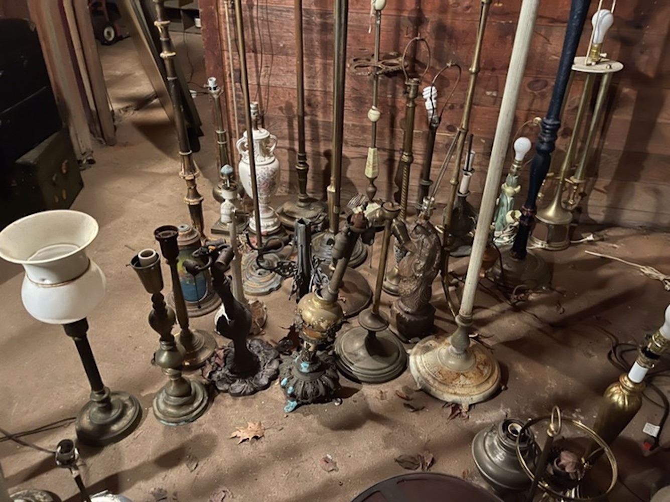 Tremendous lifetime lamp collection, approx. 100 lamps, floor, table, hanging lamps, the culmination of a lifetime passion for lighting. Don't miss this rare opportunity to own this collection! All are from the lifetime collection, being sold as found!