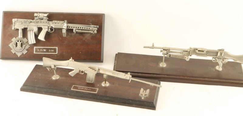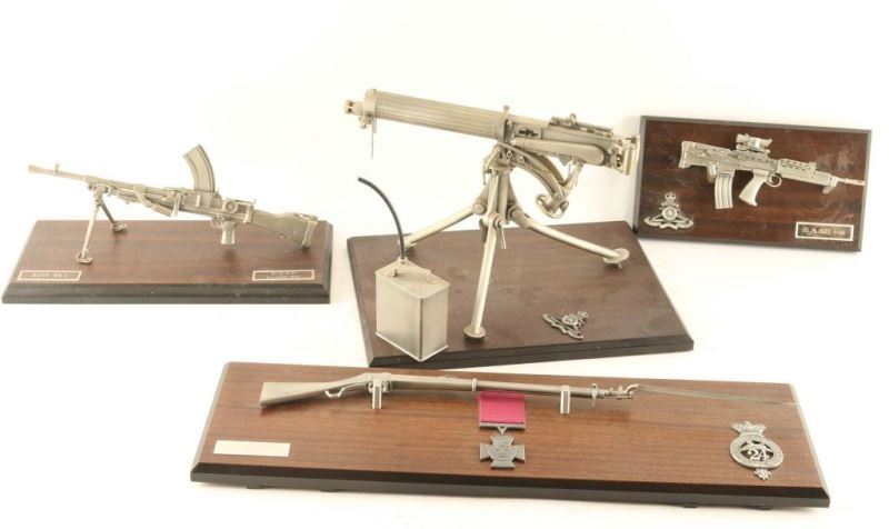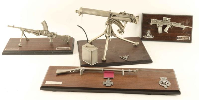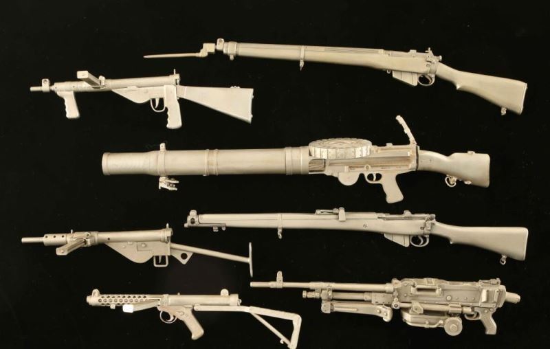 14 in all .Some are made by Present Arms Military Miniatures England. Most are have boards that they rest on. Including LSW, Victors, GPMG, SA80, SMLE, Enfield and others. Super neat collection!!!! From The John F Sukey Collection