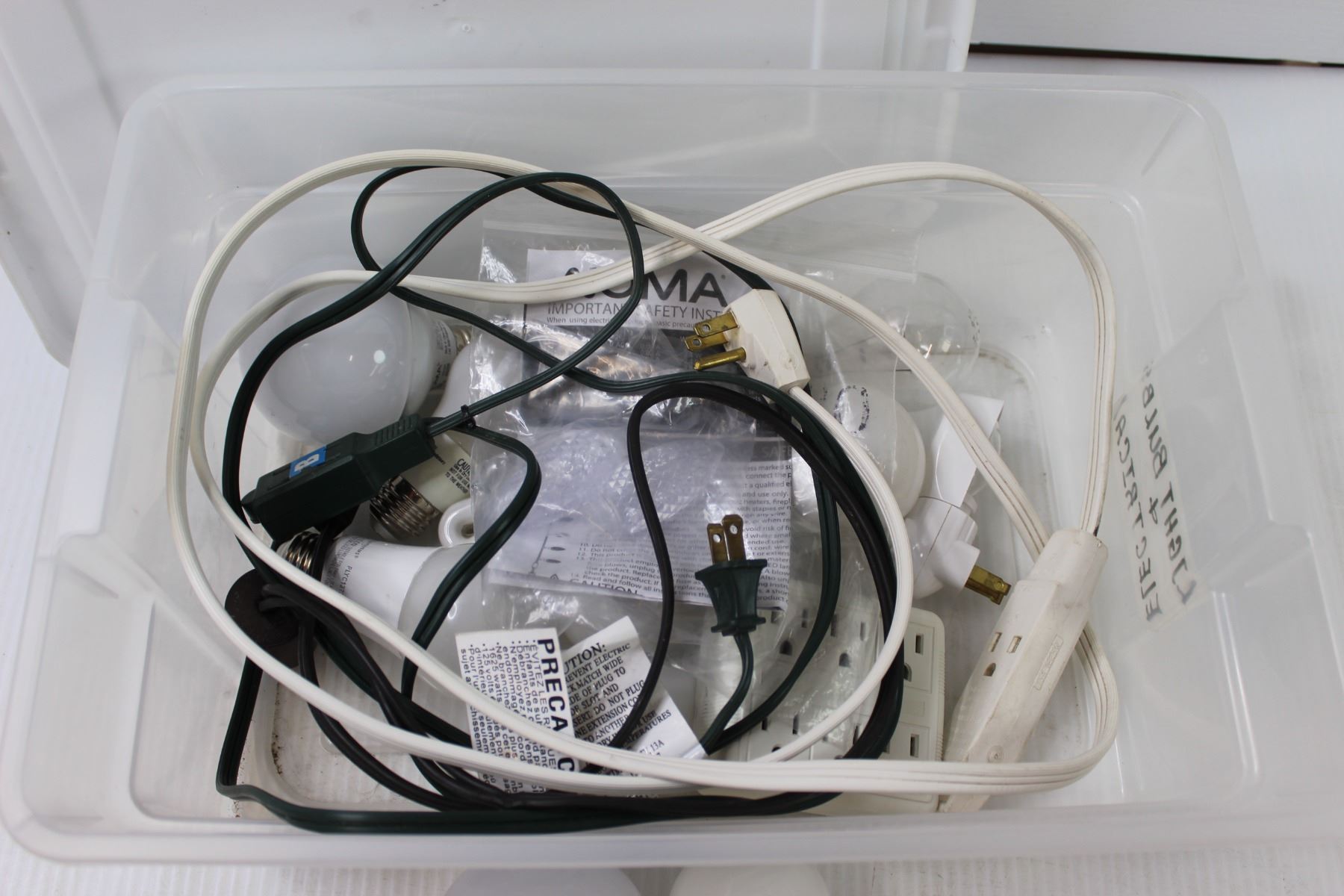 Light Bulbs and Electrical Items in Tote